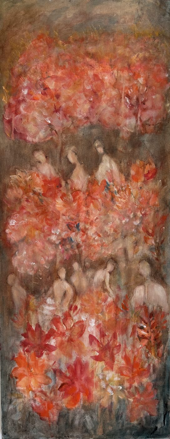 Retour aux Sources. Revenir au geste premier. A ce qui relie les corps à la terre, les souffles aux fleurs, les mémoires au vivant. Ici les formes émergent puis s'effacent comme des présences anciennes. Veiller, transmettre, s'offrir. Ecouter ce qui, en nous, se souvient.
